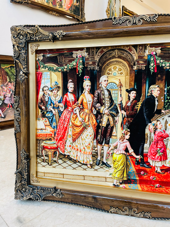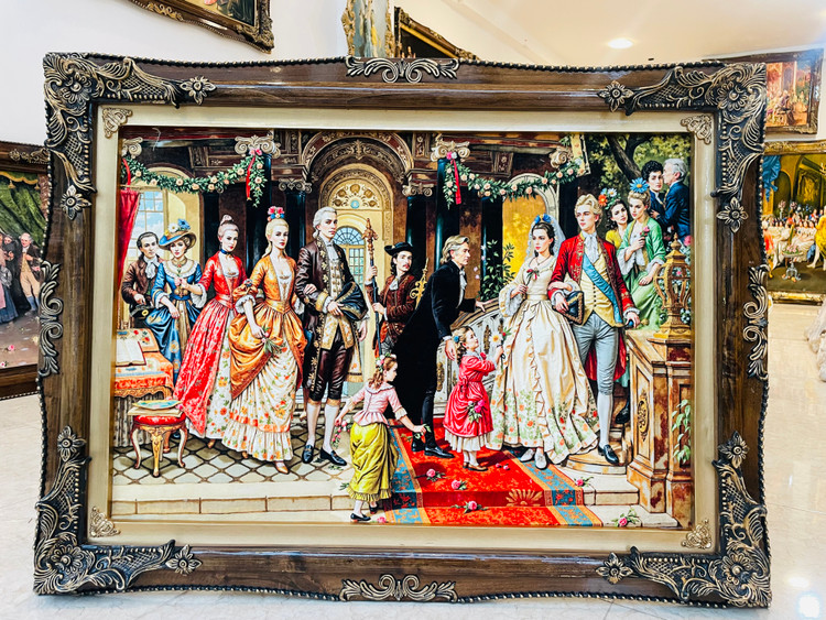 تابلو فرش ماشینی طرح عروسی ناپلئون ابعاد با قاب چوبی ۱۲۰*۹۰