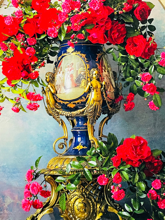 تابلو فرش ماشینی طرح گل و گلدان ابعاد ۱۲۰*۹۰