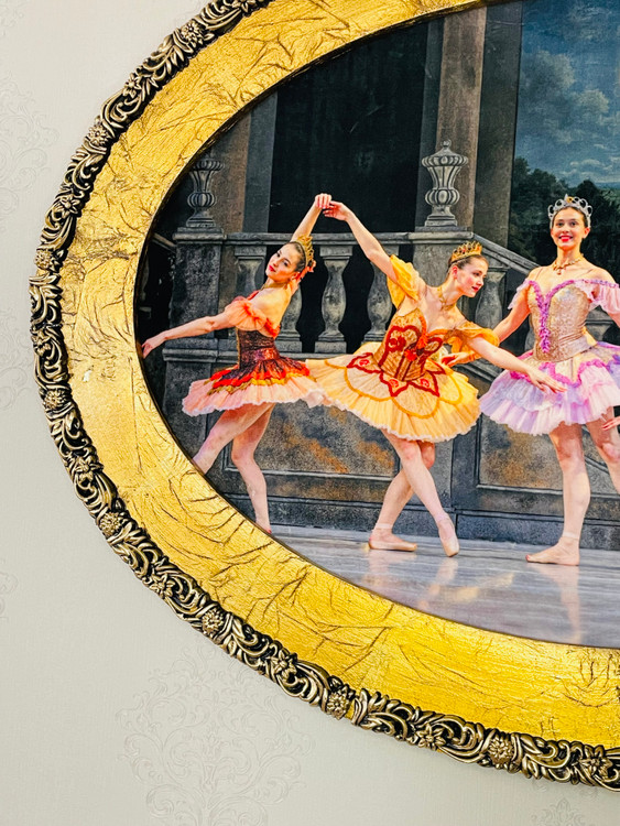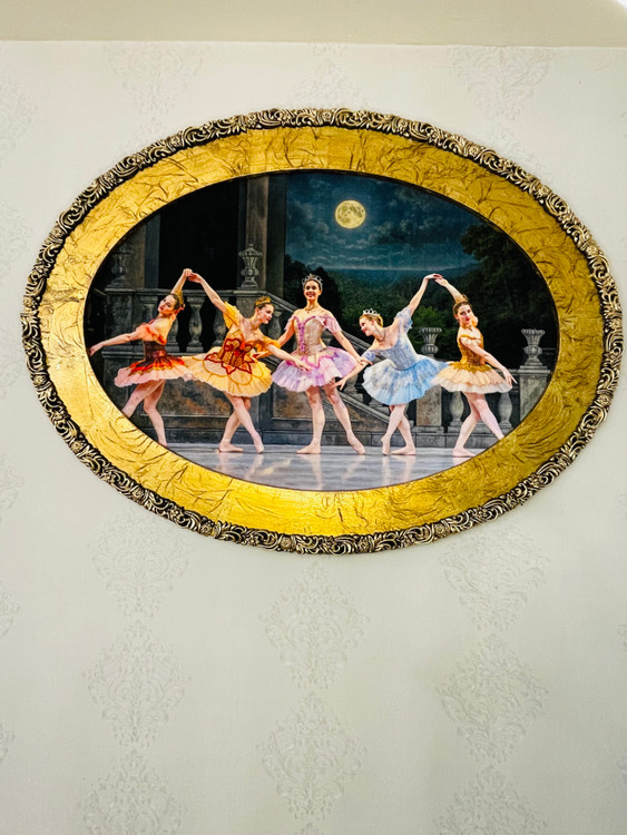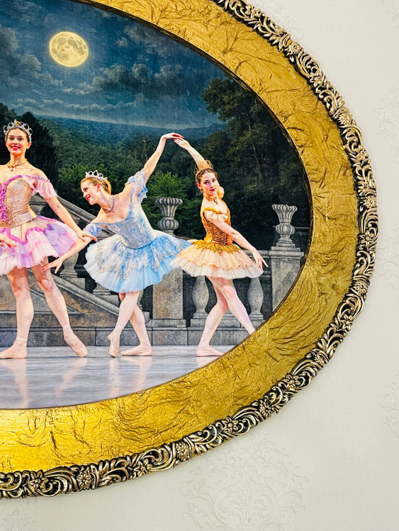 تابلو فرش ماشینی طرح رقص باله قاب ورق طلا ابعاد ۱۲۰*۹۰