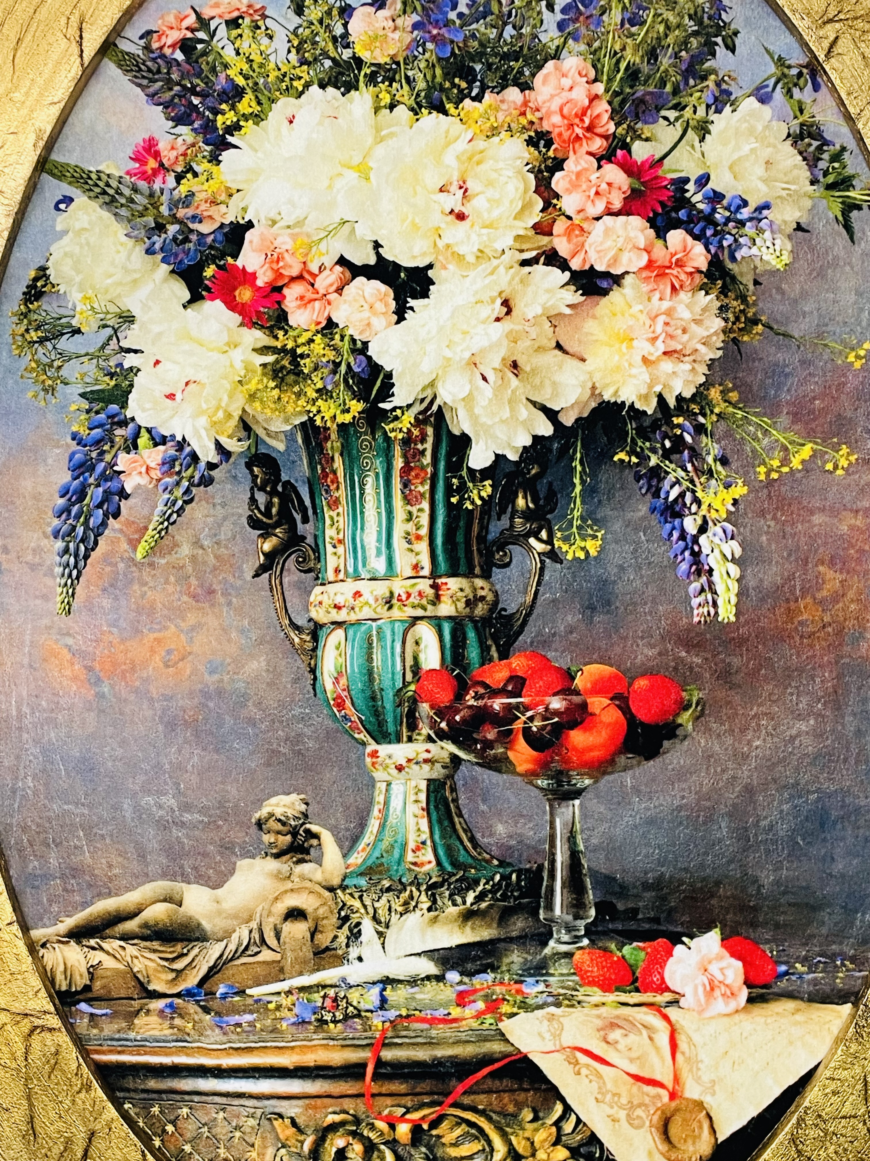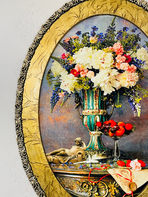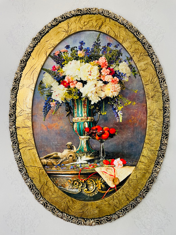 قاب مدل بیضی چوبی ورق طلا