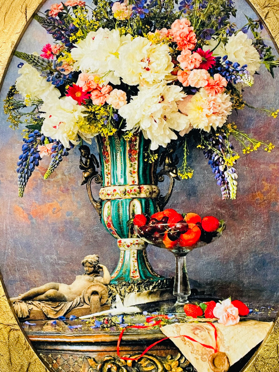 تابلو فرش ماشینی طرح گل و گلدان
