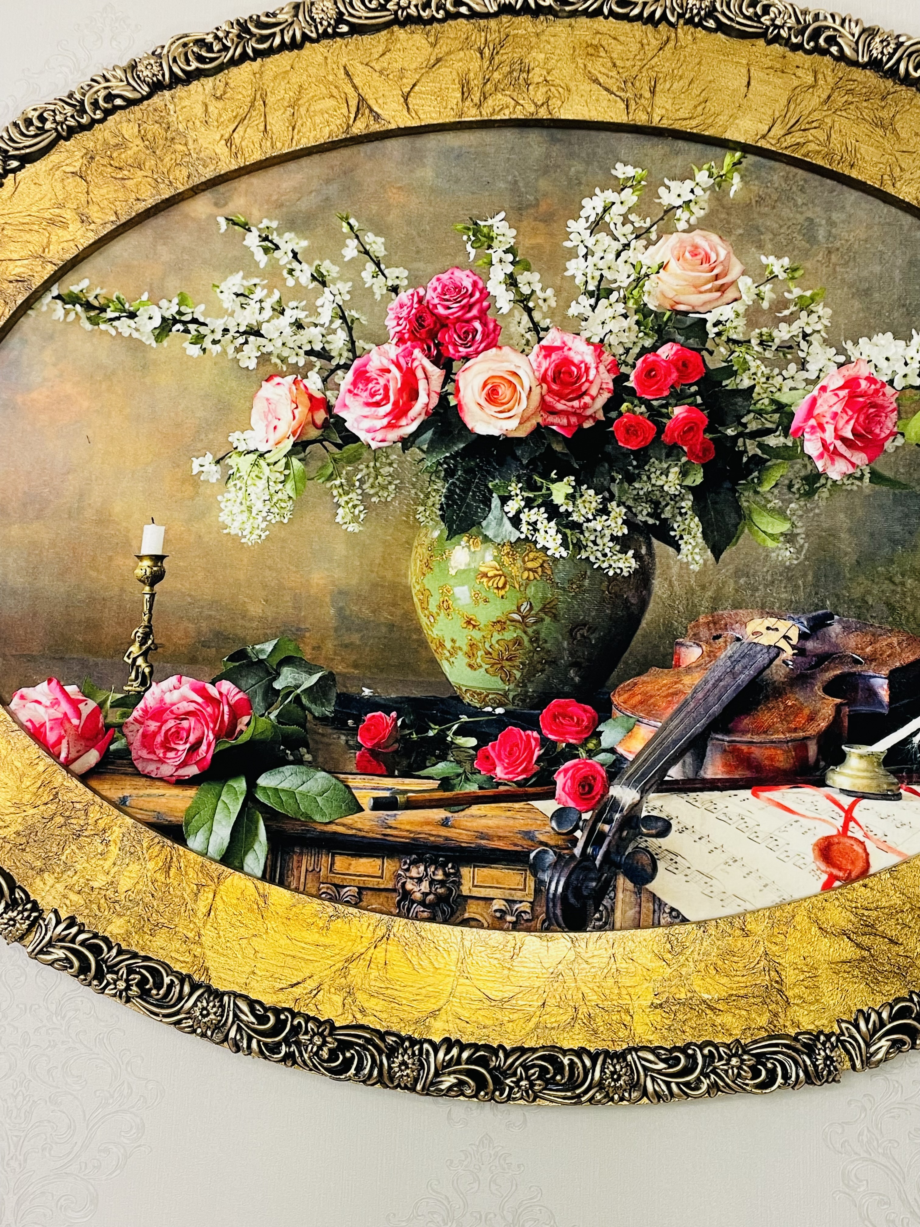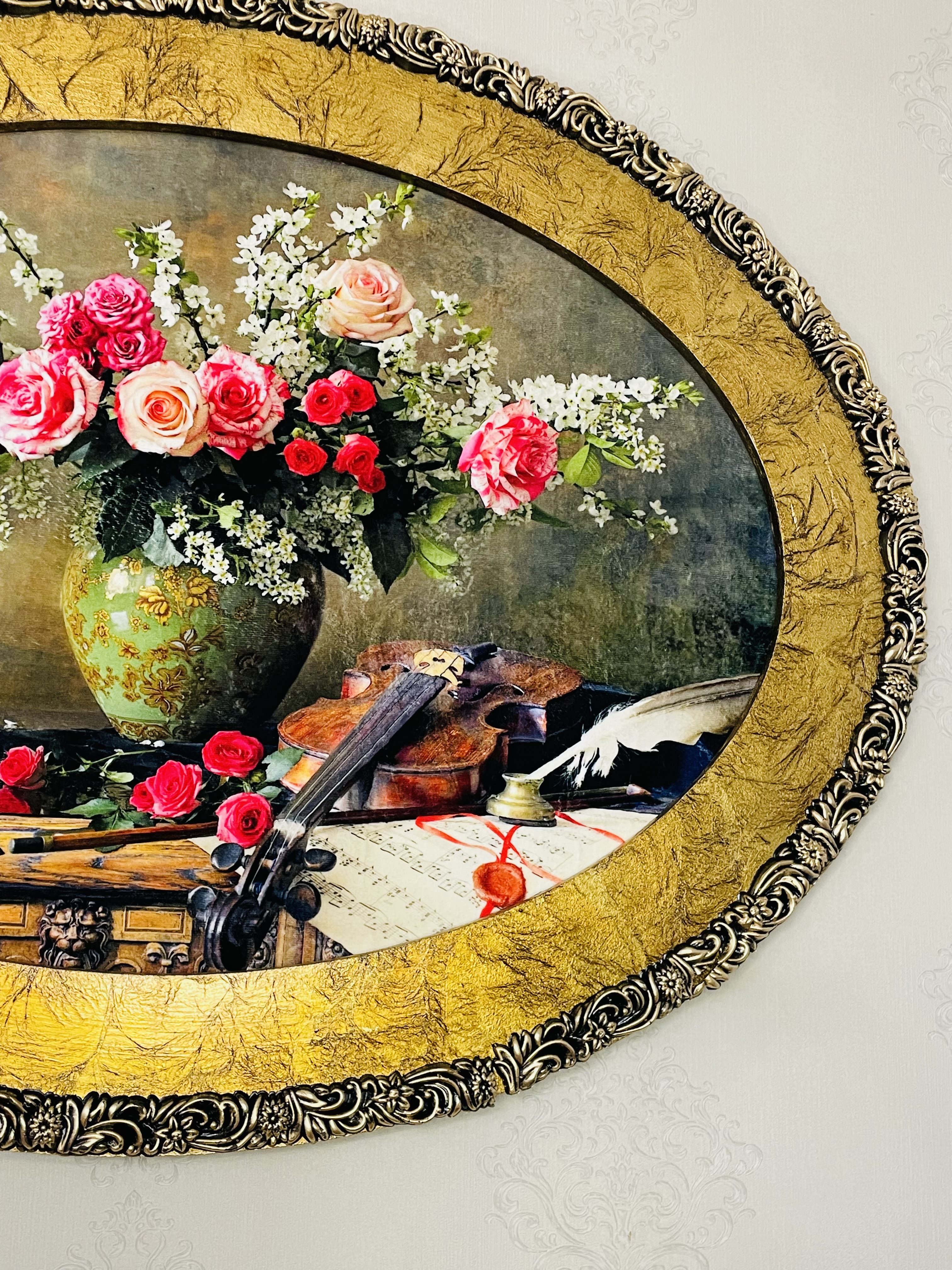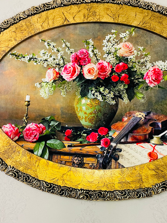 تابلو فرش ماشینی طرح گلدان و ویولون ابعاد ۱۲۰*۹۰