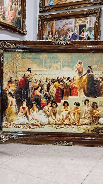 تابلو فرش ماشینی طرح بازار برده فروشان ابعاد با قاب ۱۲۰*۹۰
