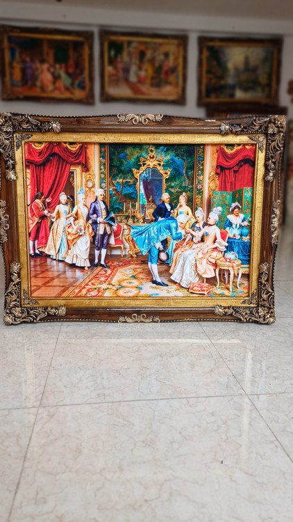 تابلو فرش ماشینی طرح دستبوس ابعاد با قاب چوبی ۱۲۰*۹۰