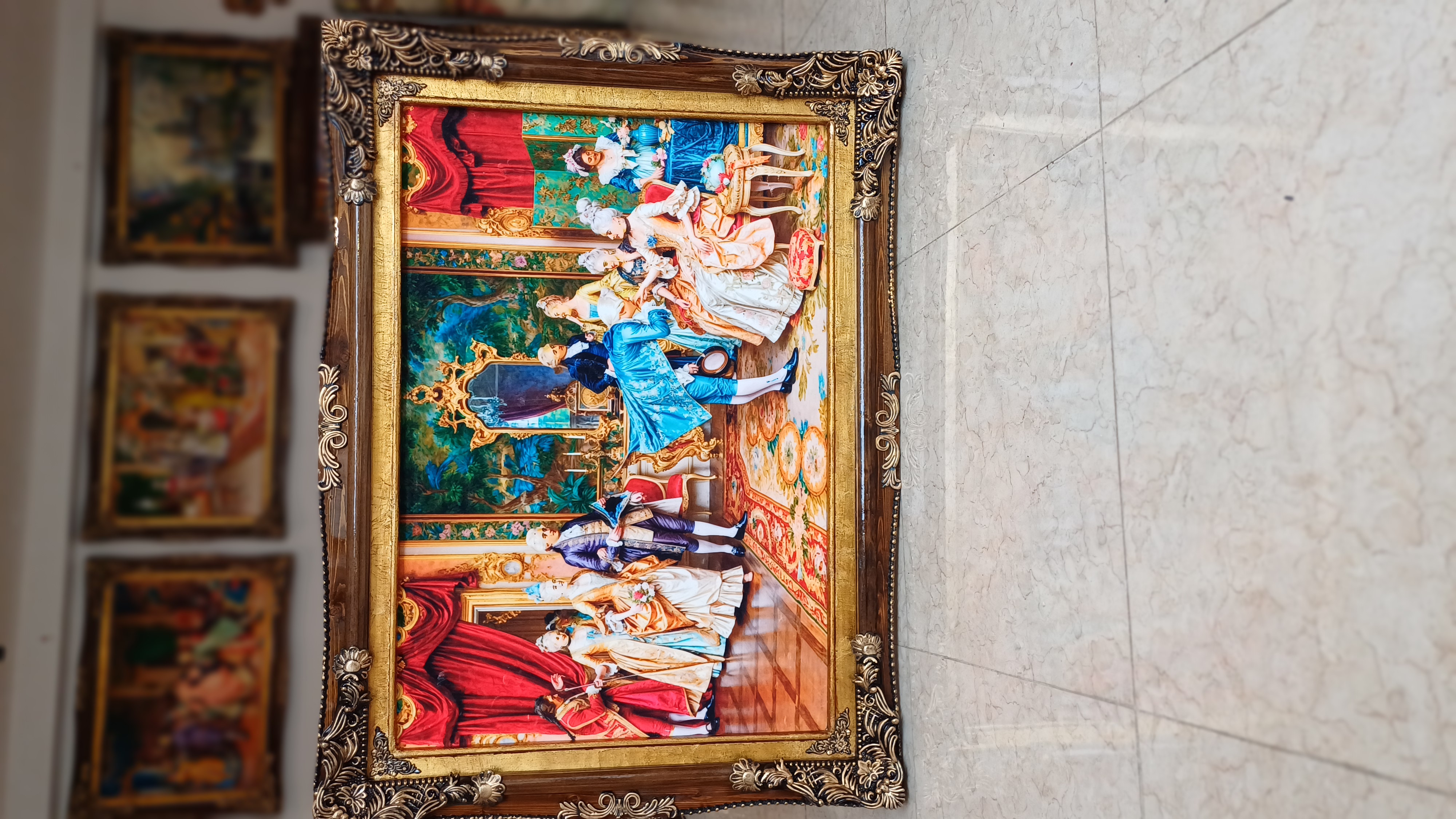 تابلو فرش ماشینی طرح دستبوس ابعاد با قاب چوبی ۱۲۰*۹۰