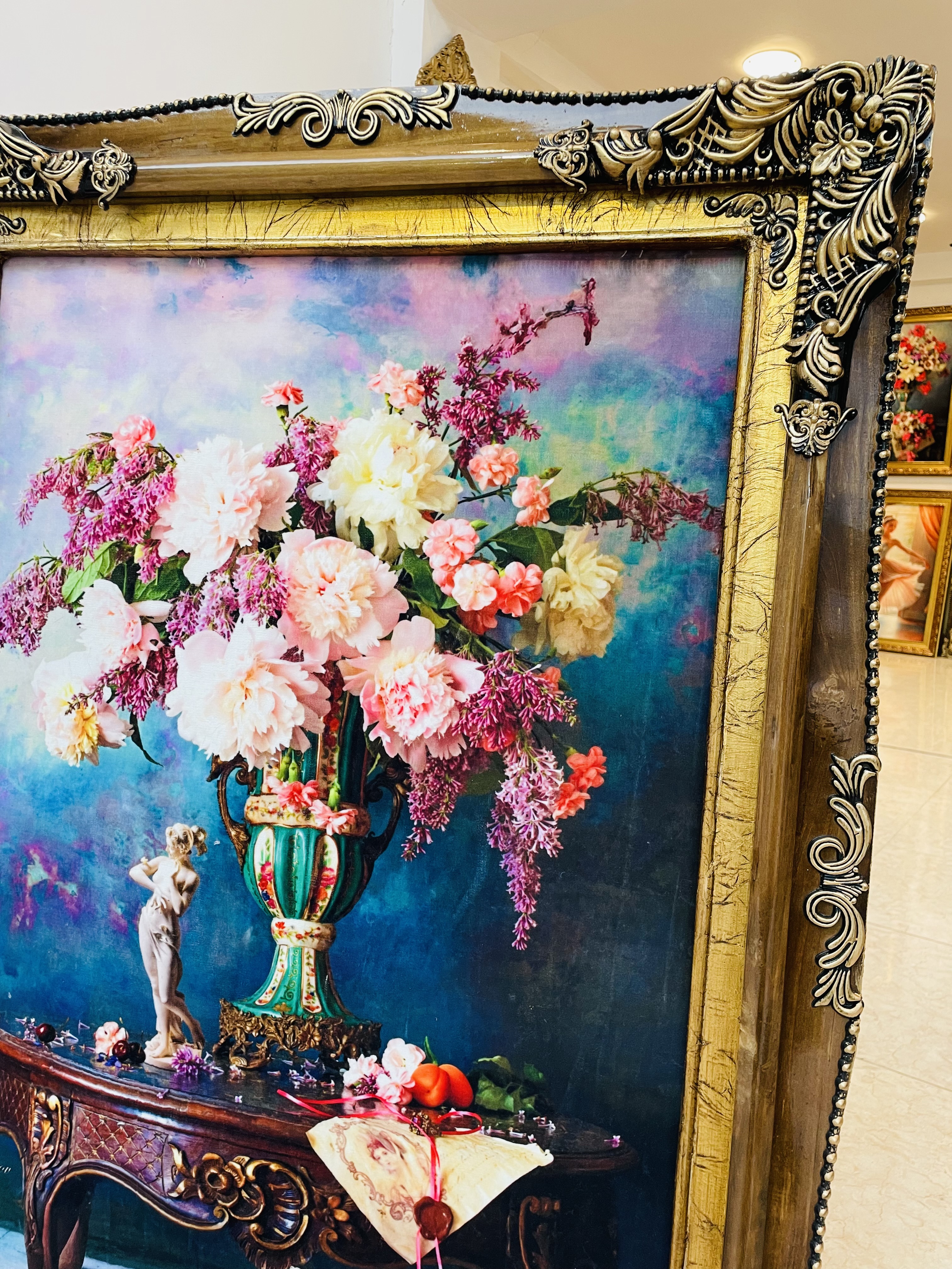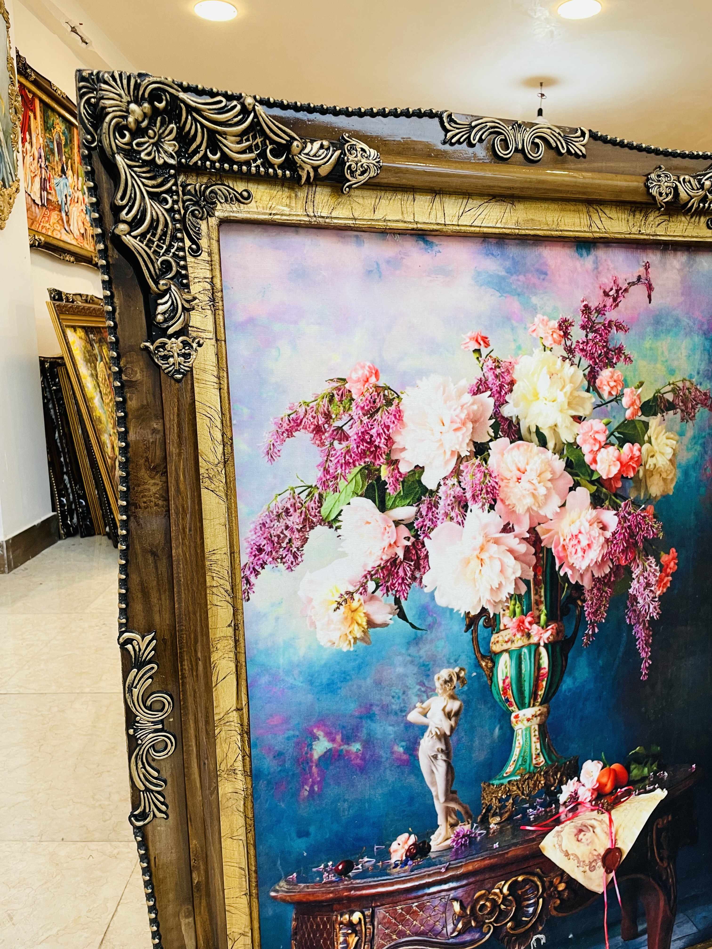تابلو فرش ماشینی طرح گل و گلدان ابعاد ۱۲۰*۹۰