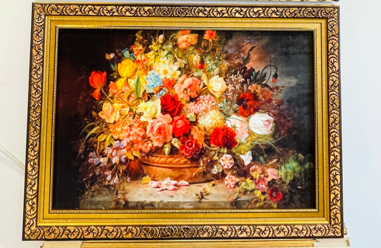تابلو فرش ماشینی طرح سبد گل ابعاد با قاب ۱۲۰*۹۰