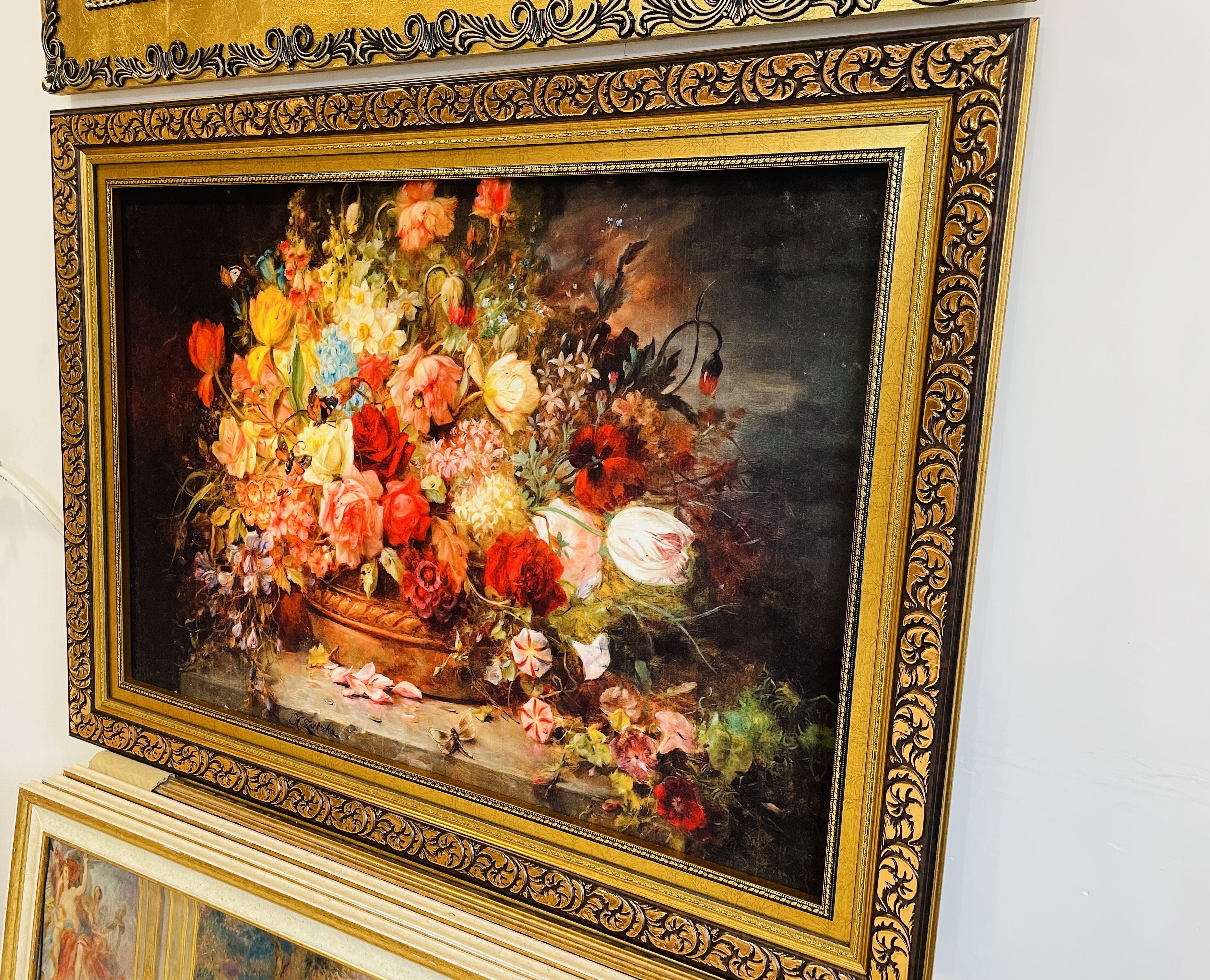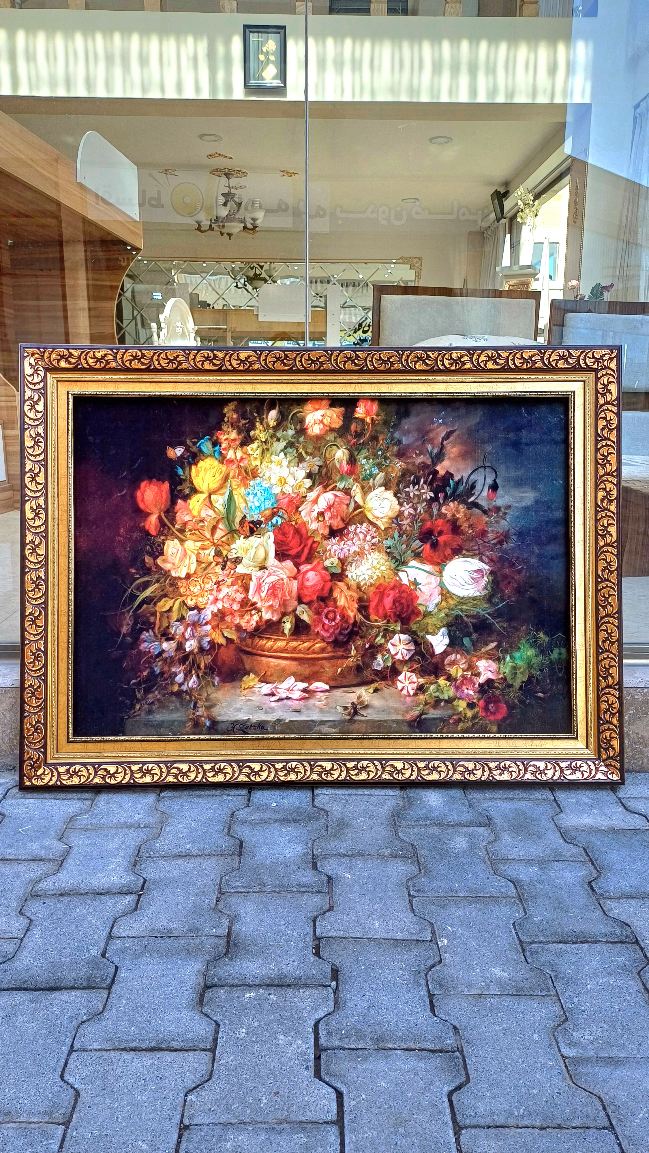 تابلو فرش ماشینی طرح سبد گل ابعاد با قاب ۱۲۰*۹۰
